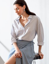 Блузка свободного силуэта в тонкую полоску из хлопка