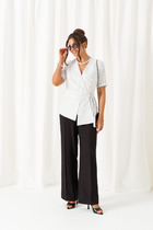 Летний костюм с шортами. Футболка из вискозы с тропическим принтом. Свободный крой. Верх шорт обработам поясом с широкой резинкой, в боковых швах кармашки. Горловина - лодочка.
