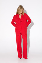 Жакет полуприлегающего силуэта с центральной застёжкой на планку(6 петель и пуговиц). На переде обработаны кокетки, нагрудные вытачки, рельефные швы, карманы с листочками в швах, накладные карманы. Спинка с кокеткой, средним швом, рельефными швами. Рукав втачной, двухшовный, с разрезом в локтевом шве, по низу с заложенной складкой и манжетой на пуговице. Воротник стояче-отложной с отрезной стойкой.