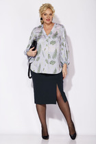 Рубашка прямого кроя с застёжкой-планкой на шесть петель и пуговиц. На полочках обработаны нагрудные вытачки, кокетки, накладные карманы и отделочные клапаны. Спинка с кокеткой, складкой и отделочной шлёвкой по центру. Рукав втачной, длинный, по низу застёгивается манжетой с пуговицей. Воротник стояче-отложной с отрезной стойкой. В боковых швах разрезы, низ рубашки разноуровневый.