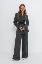 Отделкой служат молния, декоративная нашивка, наконечники. Фурнитура может незначительно отличаться от представленной на фото. Длина жакета от центра горловины спинки до низа 72,5-73,5 см. Длина рукава 61 см. Длина брюк по боковому шву без учета пояса 99 см. Материал хорошо тянется.