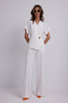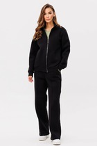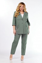 Комплект женский двухпредметный, состоящий из жакета и брюк, отлично подойдет как для работы, так и для повседневной жизни. Жакет прямого силуэта с центральной бортовой застёжкой на две петли и пуговицы. На переде обработаны нагрудные вытачки, накладные карманы на уровне бёдер. Спинка со средним швом. В боковых швах обработаны разрезы. Рукав втачной, длиной 3/4, с отложной манжетой. Горловина обработана английским воротником. Брюки прямые, слегка зауженные к низу, на притачном поясе с пуговицей и с резинками в районе боковых швов. На передних половинках обработаны функциональные карманы. Фурнитура может незначительно отличаться от представленной на фото.