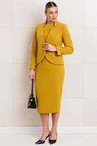 В боковых швах обработаны разрезы. Рукав втачной, короткий, присобран патой. Воротник стояче-отложной с отрезной стойкой.