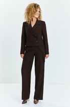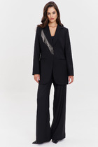 Нарядный женский комплект-двойка, состоящий из туники и брюк, выполнен из струящейся ткани. Ассиметричный крой в сочетании со стильной фурнитурой создаёт яркий притягательный образ для праздничных событий.