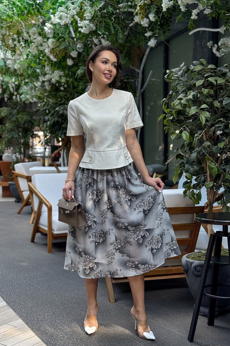 Состав: Блуза- Вискоза-32%; ПЭ-39%; Лён-29%; Юбка- ПЭ-100%;