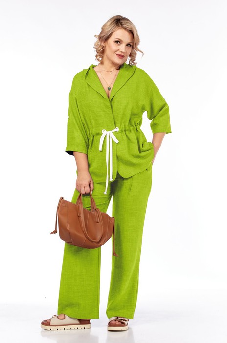 Костюм женский двухпредметный, состоящий из жакета без подкладки с капюшоном и прямых брюк с защипами.