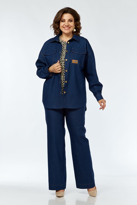 Брюки прямого силуэта с центральной застёжкой на молнию и петлю-пуговицу.