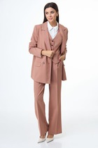 Брюки расширенные к низу типа "палаццо" с центральной застёжкой на молнию и петлю-пуговицу. В боковых швах карманы с отрезным бочком. Пояс притачной с резинками по бокам.