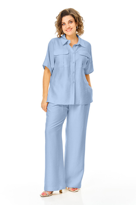 Комплект женский состоит из блузы и брюк.