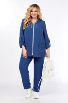 Блуза прямого свободного покроя. Рукав короткий типа "летучая мышь" с отложной манжетой. По переду пробиты увеличенные люверсы. По переду и спинке обработана кулиса с втянутым поясом. Горловина округлой формы, окантована. В боковых швах обработаны разрезы. По переду, снизу, пришита декоративная нашивка авторской формы.