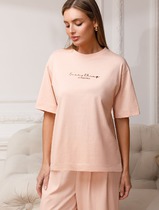 Блуза прямого свободного покроя. Рукав короткий типа "летучая мышь" с отложной манжетой. По переду пробиты увеличенные люверсы. По переду и спинке обработана кулиса с втянутым поясом. Горловина округлой формы, окантована. В боковых швах обработаны разрезы. По переду, снизу, пришита декоративная нашивка авторской формы.