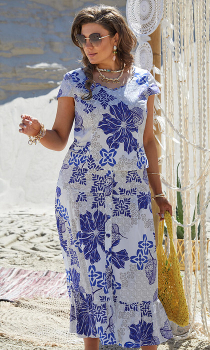 Просто роскошный костюм, который станет отличным дополнением в гардеробе каждой модницы! Невероятно красивый яркий принт в данной модели перенесёт Вас на юг Италии и создаст образ, который будет приковывать внимание. Костюм женский двух-предметный, состоящий из блузки и юбки. Блузка прилегающего силуэта с плавным V-образным вырезом горловины с отделкой декоративной тесьмой из основной ткани. По переду блузки рельефы и дополнительный декоративный элемент в виде пуговиц, обтянутых основной тканью, и шлёвок, выходящих из бокового шва. Спинка с фигурным вырезом горловины и декоративной вставкой резинки-венгерки по центру. Рукав втачной - крылышко. Юбка длинная, с притачным поясом со вставкой из эластичной тесьмы-резинки от талиевых вытачек по переду и спинке юбки. По переду юбки планка с застёжкой на петли и пуговицы. Юбка с притачной кокеткой с талиевыми вытачками и заложенными складками от подреза. По низу юбки притачной волан со сборкой от подреза. Длина блузы от высшей точки плечевого шва до низа 55 см (р.50-54), 56 см (р.56-60). Длина рукава 13 см (р.50-54), 13,6 см (р.56-60). Длина юбки по среднему срезу заднего полотнища с поясом 93 см. Ширина пояса 3,4 см.