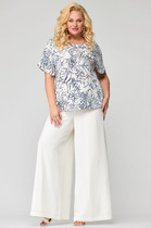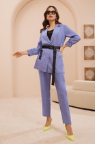 В элегантном летнем костюме, который состоит из удлинённого блузона и свободных брюк на резинке, вы всегда будете в центре внимания! Костюм сшит из непрозрачного струящегося материала. Лиф блузона скроен на запах в два слоя спереди и сзади, поэтому блузон не просвечивает, а удлинённые полочки красиво развиваются при ходьбе.