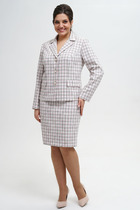 Костюм женский из плотного гладкокрашеного трикотажного полотна "кулирка", состоящий из футболки и шорт. Футболка - свободного покроя, с удлиненными плечевым и швами, короткими втачными рукавами и горловиной овальной формы, обработанной втачной планкой. В нижней части переда слева настрочен декоративный элемент прямоугольной формы. По горловине проложена отделочная строчка. Шорты - классического покроя, на притачном поясе с эластичной тесьмой внутри и карманами в боковых швах. Для регулирования степени прилегания шорт по талии в пояс вставлен шнурок, продетый через два отверстия в соединительных швах в центре пояса.