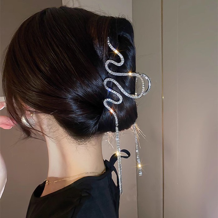 Красивый крабик для волос в форме серебристого зиг-зага с подвесками прекрасно дополнит Ваш образ. Крепкий и надежный заколка-краб для густых и нормальных волос отличный вариант для быстрой прически. Крабик станет незаменимым аксессуаром для волос в повседневной жизни и подойдет для вечернего образа или фотосессии.Блестящие кристаллы на крабе создают особый шарм.