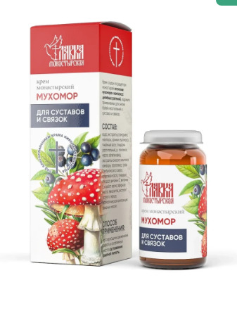 Совместные покупки Симферополь Товары для здоровья Бальзамы, мази — Крем монастырский мухомор «Для суставов и связок», стекло, 30 мл, «Монастырская