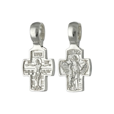 Крест (Ангел Хранитель) из серебра литье белый