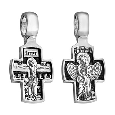 Крест (Ангел Хранитель) из серебра литье частичное чернение