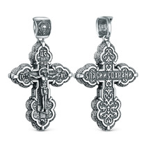 Крест православный из чернёного серебра с лимонным золочением - Спаси и сохрани,
