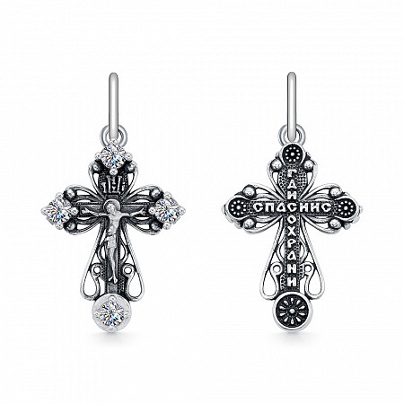 Крест из серебра литье с фианитом частичное чернение