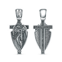 Крест из чернёного серебра - Рaспятие, Спаc Неpукотвоpный, Архангел Михаил, Каза
