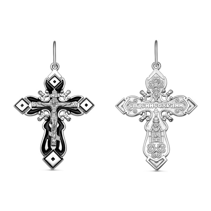Совместные покупки Симферополь Ювелирные украшения и бижутерия Подвески — Крест из серебра с эмалью родированный - 4,3 см 925 пробы Кр-728 Э р