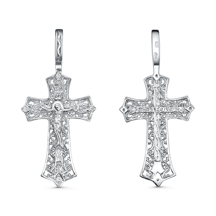 Совместные покупки Симферополь Ювелирные украшения и бижутерия Подвески — Крест из серебра с фианитами родированный - 4 см 925 пробы 2-162р