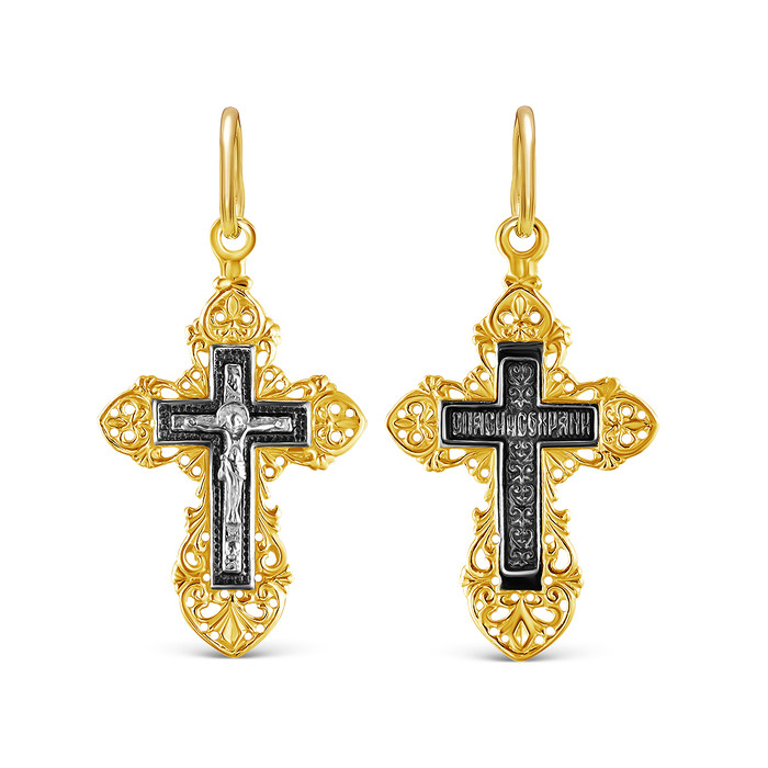 Совместные покупки Симферополь Ювелирные украшения и бижутерия Подвески — Крест из золочёного серебра с чернением - 3,2 см 925 пробы К3-255чз