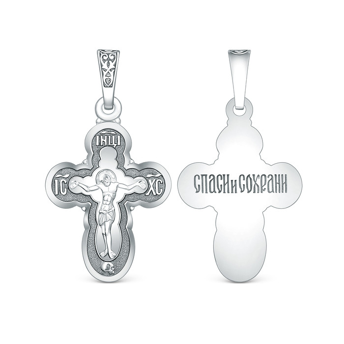 Крест православный из чернёного серебра - Спаси и сохрани 00-0043-2