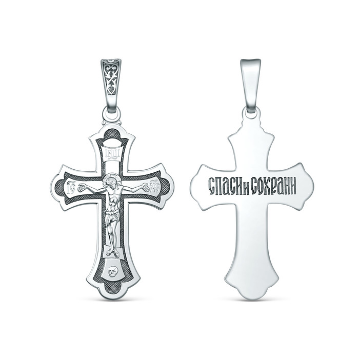 Крест православный из чернёного серебра - Спаси и сохрани, 3,9 см 00-0038-2