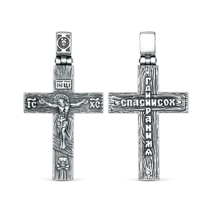 Крест православный из чернёного серебра - Спаси и сохрани, 4 см 925 пробы Кр-105