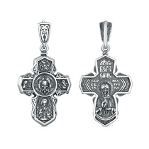 Крест православный из чернёного серебра - Спаси и сохрани Г-14чч