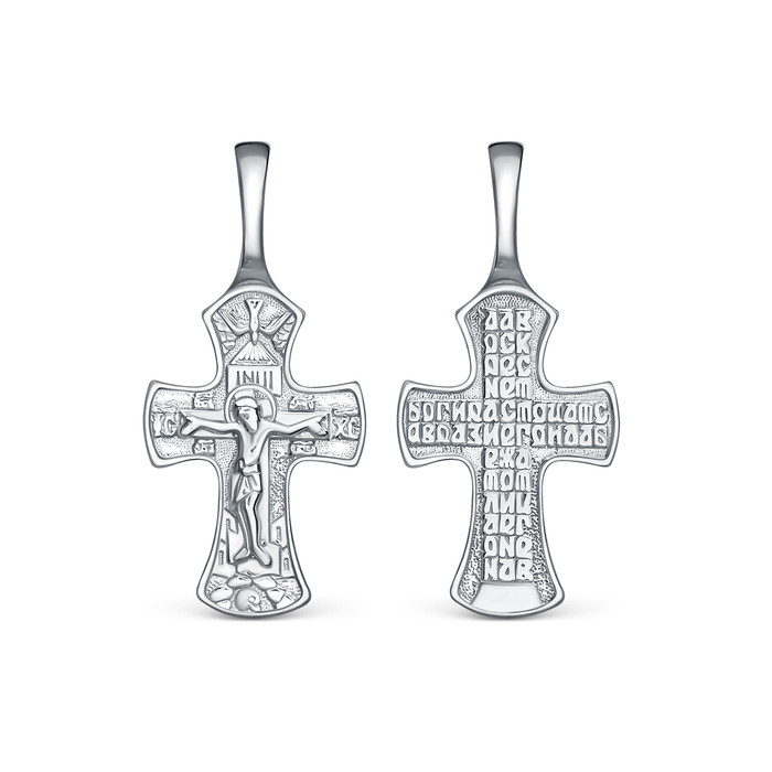 Совместные покупки Симферополь Ювелирные украшения и бижутерия Подвески — Крест православный из родированного серебра - Да воскреснет Бог 2,7 см 925 пробы