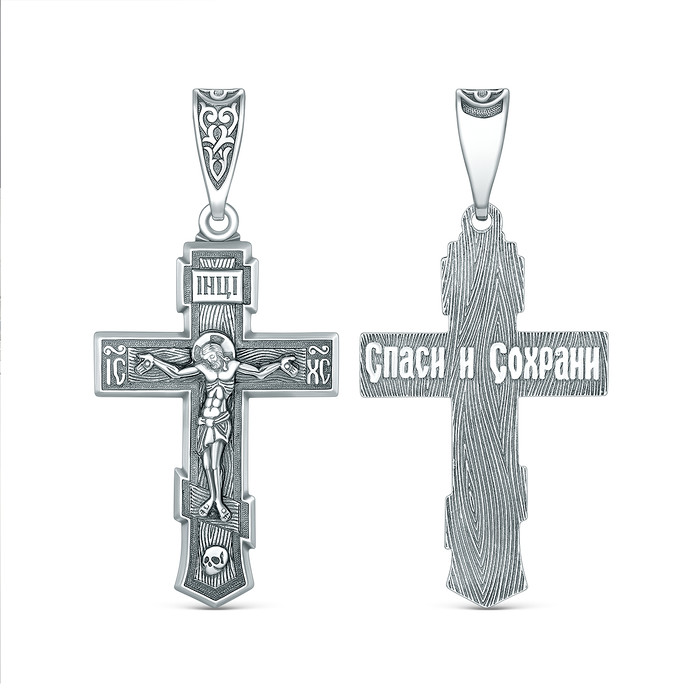 Совместные покупки Симферополь Ювелирные украшения и бижутерия Подвески — Крест православный из родированного серебра - Спаси и сохрани 4,7 см 00-0051-3