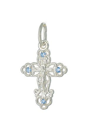 Крест с фианитом родированный серебро 925*