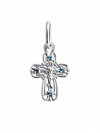 Крест с фианитом родированный серебро 925*