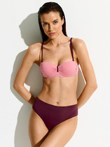 Лиф с мягкими чашками на косточках обеспечивает комфортную поддержку и подчеркивает естественную форму груди. Бретели регулируются. Трусы «слипы» с высокой линией талии и завязками по бокам подчеркивают бедра и визуально удлиняют ноги.