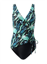 Спереди купальник декорирован кольцом и небольшой сборкой в области груди. Модель смотрится очень эффектно и отлично подойдет для бассейна и пляжного отдыха.
