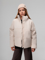 Укороченная куртка с ярким модным принтом на центральной застежке молнии подойдет юным модницам любого возраста. Ткань с основой из полиэстра обладает водоотталкивающим эффектом и не продувается. В качестве утеплителя использован ТермМакс. Воротничок, манжеты и пояс выполнены из трикотажной резинки, в тон основного цвета изделия. Модель дополняют большие удобные карманы на молниях.