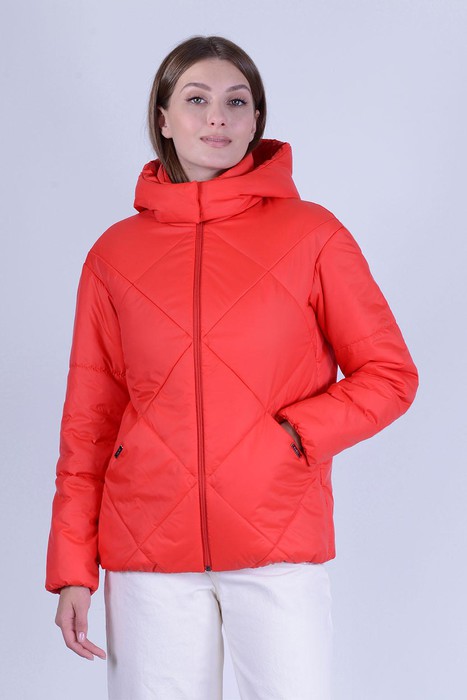 Стильная куртка прямого силуэта с оригинальным воротником стойкой и удобным капюшоном.Спущенный рукав,а так же резинка по низу изделия и рукава немного округляет и делает образ более женственным и мягким. Карманы расположены в рельефе переда и застегиваются на потайную кнопку.Такой вариант можно комбинировать с различной одеждой, он отлично дополнит повседневный гардероб. Длина по спинке - ок.66,длина рукава от горловины- ок. 72см. Рост 170 см. Р-ры 42-52 Состав: полиэстер 100%, утеплитель: Air Twin Light 100 г/m 2 Цвет:красный Цвет одежды может незначительно отличаться от оригинала.