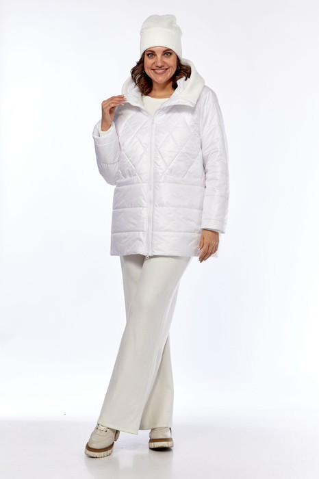 Куртка женская полуприлегающего силуэта с центральной застежкой на тесьму-молнию. По спинке кокетка. По переду кокетка, обработаны карманы с личточкой в месте притачивания кокетки к нижней части переда. Рукав втачной. Олношовный с притачным манжетом из отделочной ткани. Капюшон с центральной частью. Отделочная деталь по отлету. Шапка из отделочной ткани. В качестве отделки используется фернитура и отделочная строчка . Внешний вид фурнитуры модет отличаться от представленного на фото.Температурный режим до -5 С. (Синтепон 150 гр).