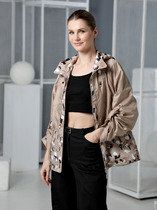Куртка с капюшоном бежевая с рисунком павлопосадского платка.