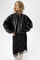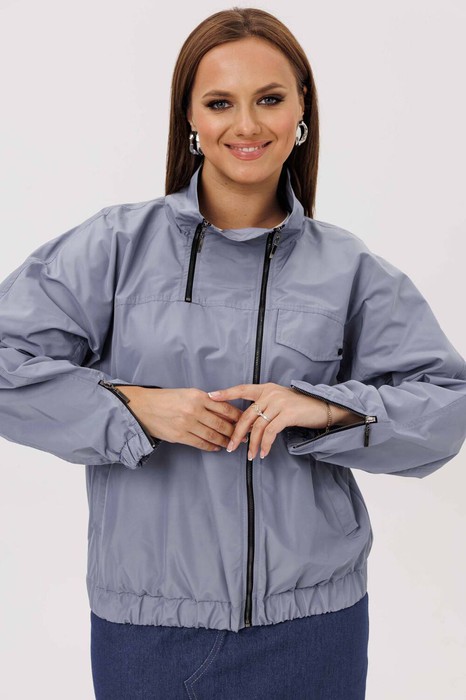 Жакет свободный со спущенными плечами на подкладке, по низу притачная планка, в которую продета резинка. По переду накладные карманы с клапанами. Воротник отложной. Рукава одношовные втачные по низу резинка.