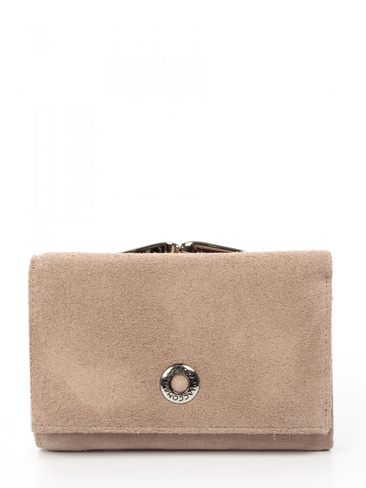 Кошелек женский выполнен из натуральной замши и натуральной кожи. Детали: кошелек закрывается на срытый магнит, 2 открытых отделения для купюр, 1 отделение для купюр на молнии, 2 кармана, 4отделения для визиток или карт, 1 отделение с прозрачным окошком для карты или проездного, 1 отделение на замке фермуар для монет. Фурнитура серебристого цвета. Упаковка: фирменная белая коробка.