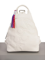 Рюкзак женский выполнен из экокожи. Детали: 2 регулируемые ручки по 102 см.  соединяющиеся в одну при помощи молнии, 2 маленькие ручки для держания в руке. Внутри изделия: 1 основное отделение на молнии, 2 открытых кармана, 1 карман для мобильного телефона, 1 карман на молнии. Снаружи изделия: 1 карман на молнии спереди, 1 карман на молнии на оборотной стороне. Брендированная подкладка из хлопка. Металлическая брендированная фурнитура серебристого цвета. В комплекте фирменный пыльник.