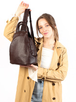 Женский рюкзак трансформер выполнен из мягкой эко кожи, фактура - натуральная кожа. Рюкзак подходит для работы, для деловых встреч, на выход, как повседневный рюкзачок для города, школьный ранец. Городской рюкзак LACCOMA практичен, изготовлен в России, усиленная металлическая фурнитура серебристого цвета добавляет индивидуальность. Детали: 2 регулируемые ручки 102 см,трансформирующиеся в одну с помощью молнии, 2 маленькие ручки для держания в руке. Внутри изделия: 1 отделение на молнии, 2 открытых кармана, 1 карман для мобильного телефона, 2 кармана на молнии. Снаружи изделия: 1 карман на молнии спереди, 1 карман на молнии на оборотной стороне. Брендированная подкладка из хлопка. В комплекте фирменный пыльник. Модель представлена в цветах: черный, белый, бежевый, серый, сиреневый, розовый, темно - бежевый. Купить рюкзак как подарок девушке, любимой, подруге на день рожденья, 8 марта, день святого валентина, новый год. Классический дизайн, популярный тренд сезона.