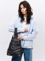 Удобство ношения обеспечено продуманной конструкцией: две укреплённые стропой регулируемые ручки длиной 82 см позволяют подобрать оптимальную длину для комфортного ношения на плече. А если вам удобнее держать рюкзак в руке — предусмотрена специальная маленькая ручка. Внутреннее пространство организовано максимально рационально: основное отделение на молнии вмещает крупные предметы, открытый карман удобен для хранения вещей, к которым нужен быстрый доступ, карман для мобильного телефона защитит ваш гаджет, а дополнительный карман на молнии надёжно сохранит ценные мелочи. Снаружи рюкзака расположены два практичных кармана: один на лицевой стороне — для предметов, которые должны быть всегда под рукой (ключи, проездной), и один на молнии на оборотной стороне. В комплекте с рюкзаком идёт брендовый пыльник.