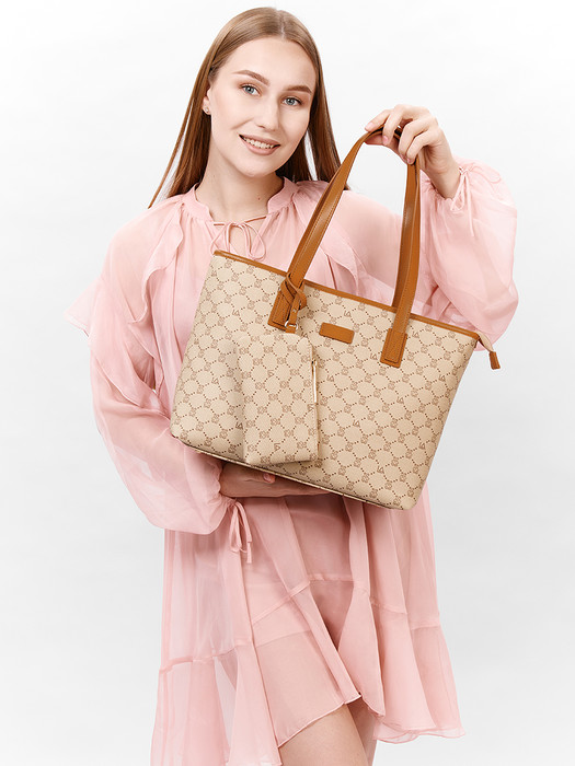 Сумка женская выполнена из экокожи. Детали: 2 ручки по 60см. Дополнительная сумочка на 1 отделение на молнии на съёмном длинном ремешке и кошелек на 1 отделение на молнии. Внутри изделия: 2 отделение на молнии разделены перегородкой в виде кармана на молнии, 1 карман на молнии, 1 карман открытый. Снаружи изделия: 1 карман на оборотной стороне на молнии. Брендированная подкладка из хлопка. Металлическая брендированная фурнитура золотистого цвета. В комплекте фирменный пыльник.