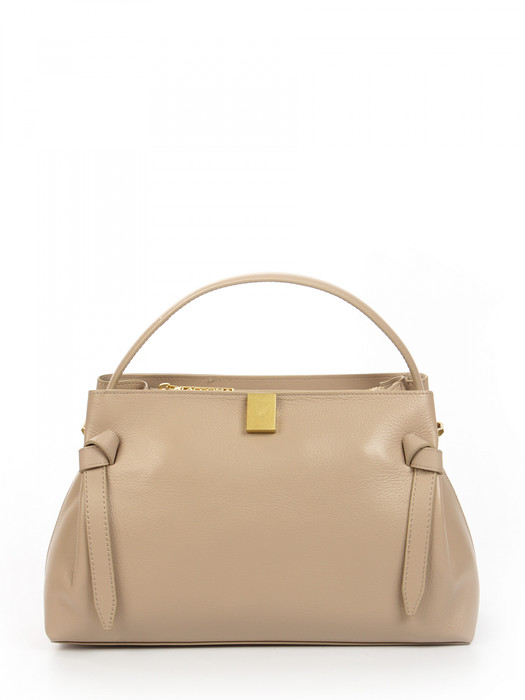 Сумка женская выполнена из натуральной кожи. Детали: 1 ручка 35 см, 1 регулируемый ремень от 110 см до 135 см. Каркас сумки: мягкий. Внутри изделия: 1 отделение на молнии. Снаружи изделия: 1 карман на молнии сзади. Металлическая брендированная фурнитура золотистого цвета. В комплекте фирменный пыльник для хранения сумки.