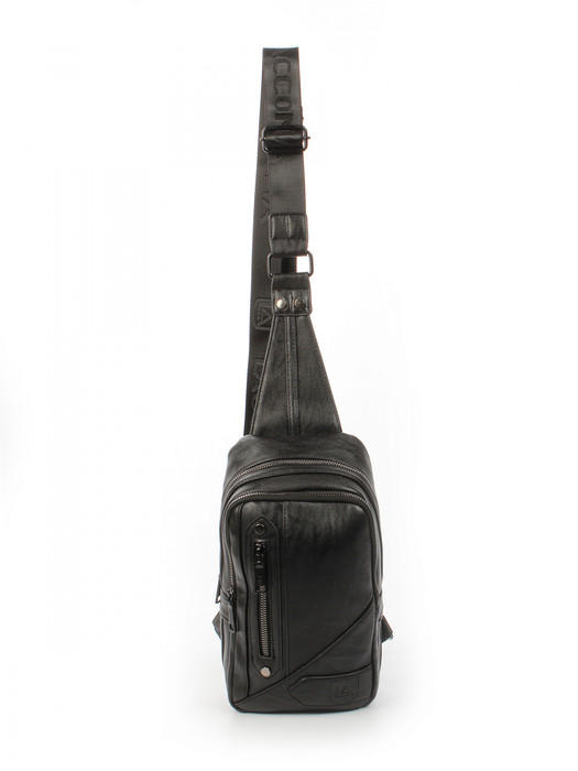 Сумка слинг мужская через плечо выполнена из экокожи. Детали: 1 длинный регулируемый ремень от 110 см до 180 см. Внутри: 2 отделения на молнии, 1 карман на молнии, 1 открытый карман. Снаружи изделия: 1 карман на молнии сзади, 1 карман на молнии спереди. Брендированная подкладка из полиэстера. Металлическая брендированная фурнитура черного цвета. В комплекте фирменный пыльник для хранения.